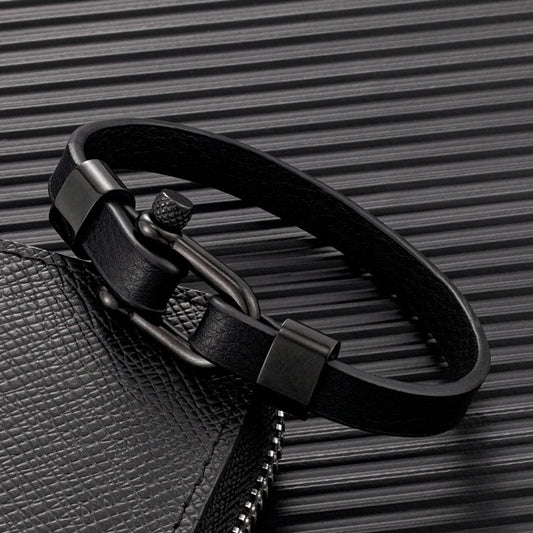 Pulsera Cruz - Cuero y Acero